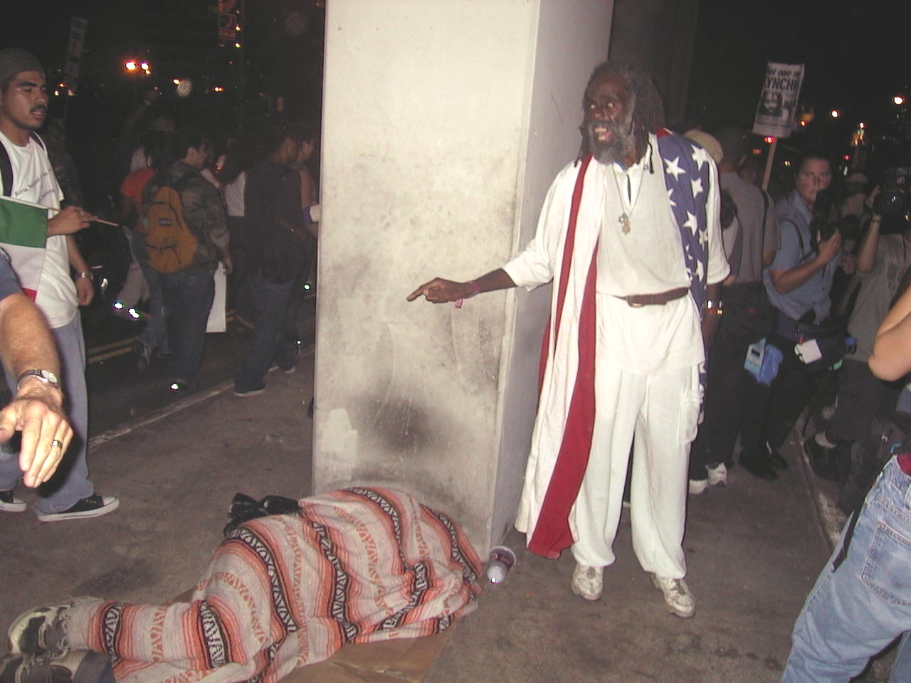 homeless person, Ted challenged young protesting demonstrators