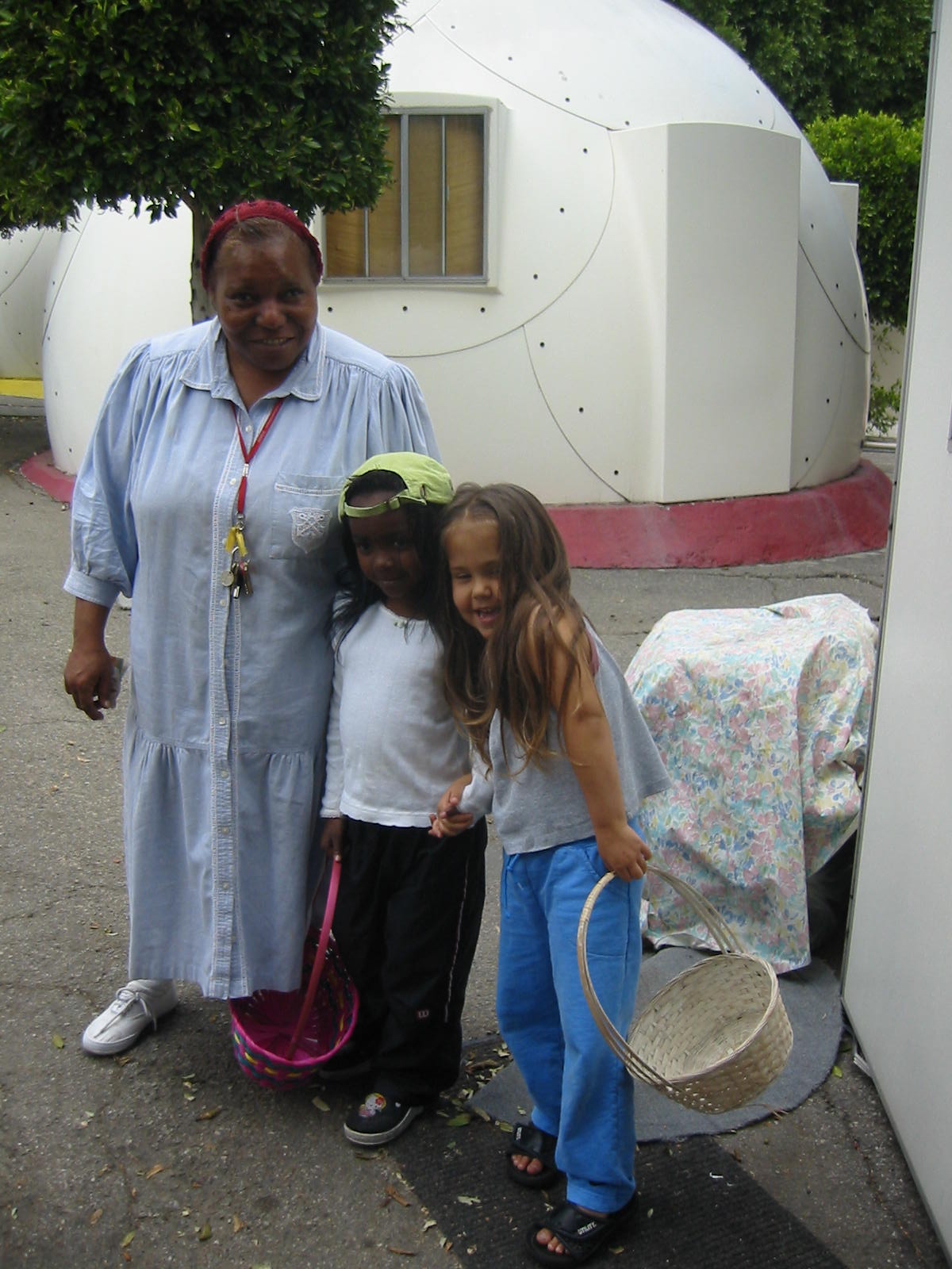 Gwen had been a victim of domestic abuse for many years. One day she was afraid and feared for her life and she realized that she could no longer survive in her situation so she left the place where she was living. She ended up living outside a shed she knew of in the neighborhood. One day she was at the general relief office and she met a man who told her about the Dome Village. He brought her to the village to fill out an application. The man found out where Gwen was staying and kept in touch with her until an opening was available at the Dome Village. When Gwen first arrived at the Dome Village she was very shy and fearful. It took her a while but she began to have some hope again and started to involve herself in Dome Village activities and programs. She began to have some positive relationships and her self esteem began to grow. Dome Village staff helped her to get regular mental health counseling and help with her medical issues. She also was able to get a set of dentures which she desperately needed... and with the new teeth came a more confident and stronger Gwen. And her speech improved dramatically as well. Gwen found out that she actually had a lot of talents and even leadership qualities that she had never considered. She dug in to many programs. She learned computers and began to correspond with family members who she hadn't been in touch with for many years. She became the chairwoman of the Dome Village Store. With the money the Dome Village Store raised, Gwen helped to organize Easter Egg Hunts & Parties at the Dome Village for the children who lived in and near the Village. Her activities also included being a star student in regular art classes with June, Katherine & Ronda. And it was Gwen's idea that the art program create posters about the National Homeless Plan Campaign to be placed on buses around LA. Gwen also enthusiastically worked as a vendor for the "Big Issue' homeless newspaper. She never missed an opportunity. With the help of Dome Village staff Gwen was able to make a successful application to a subsidized permanent housing situation called "A Community Of Friends" where she now has he own small apartment. Gwen still calls and stops by the Dome Village from time to time to visit and share her appreciation for the opportunities that Dome Village gave her. |