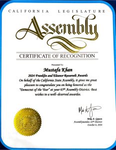 “Certificate of Recognition”, California, State Assembly